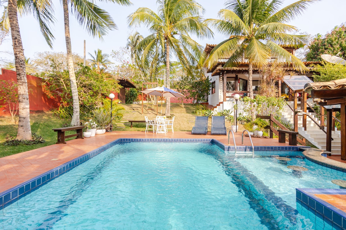 CasaMirtha är ditt ljuva hem i Búzios. Nära Ferradura-stranden och den berömda Rua das Pedras. 6 BR (4 ensuite) för att garantera komfort för upp till 16 gäster. Full integritet och säkerhet. Pool med "swim-up bar", grillplats, däck och pergola. Fullt utrustat. Wifi, smarta TV-apparater Sänglinne och handdukar ingår. För extra komfort erbjuder CasaMirtha: - Spis eller städare ingår (från 07:00 till 16:00) - El/vatten ingår - HUSDJURSVÄNLIGT ;)