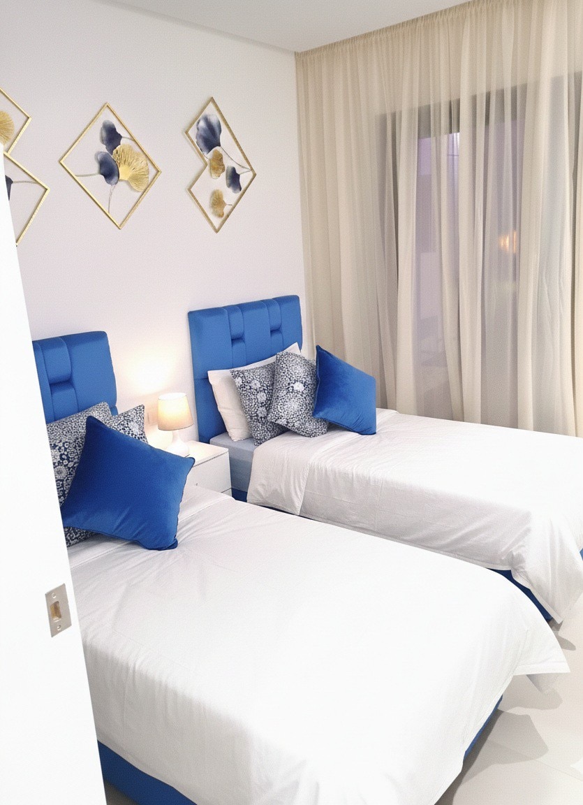 lägenheten är ganska vänlig, ljus förberedd för alla dina behov. Lägenheten innehåller två sovrum och två badrum. ett sovrum som innehåller en dubbelsäng, badrum och garderob ett andra sovrum med två singlar Balkongen nås genom vardagsrummet och gästsovrummet. köket är välutrustat, du hittar en mikrovågsugn, tvättmaskin, kylskåp och ugn och allt du behöver Wifi tillgängligt Tre 50'50'65' tums TV-apparater