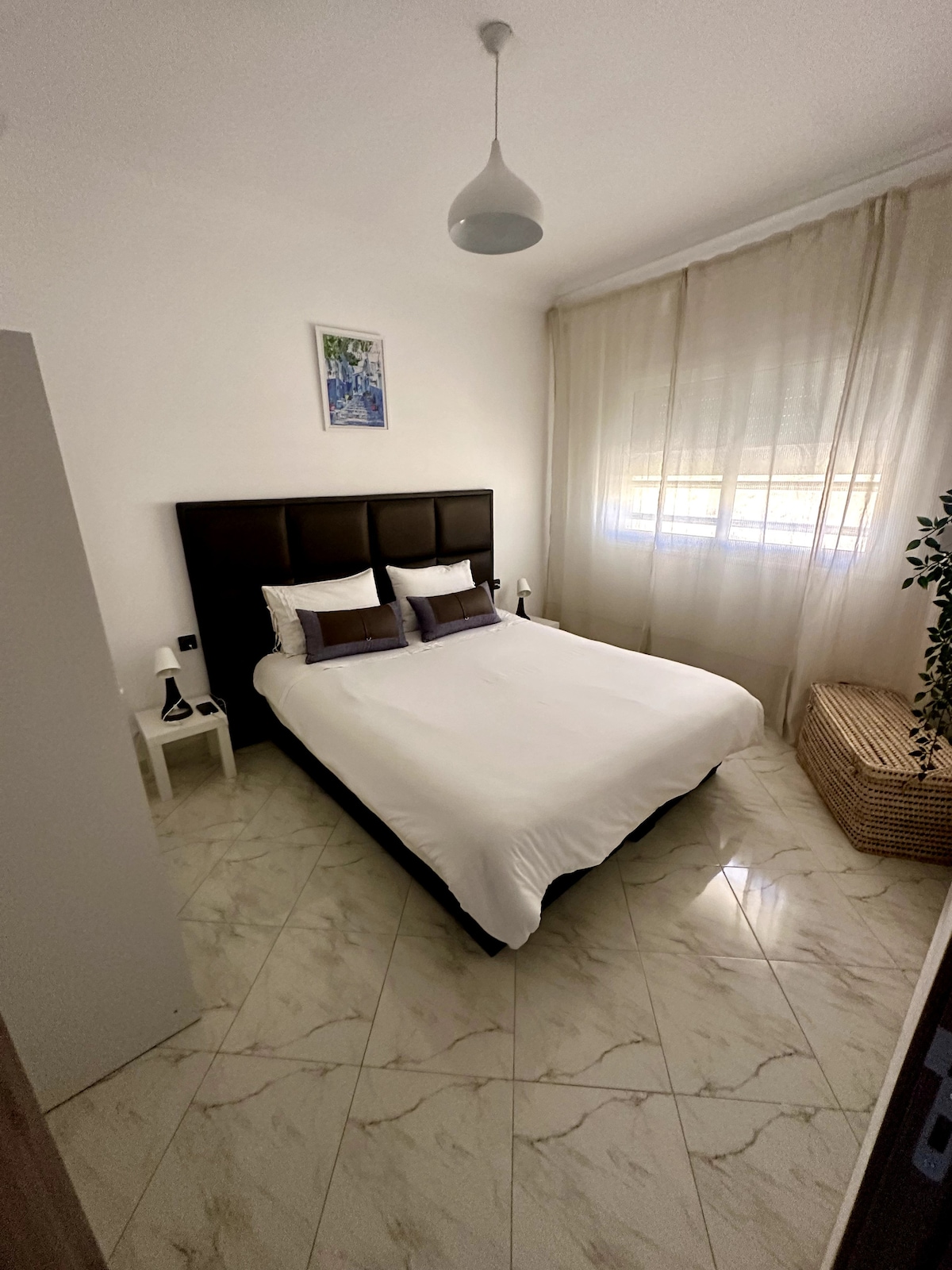 Njut med din familj eller nära och kära denna fantastiska lägenhet som innehåller ett rymligt vardagsrum och ett sovrum med en dubbelsäng. Du kommer också att ha ett utrustat och separat kök till ditt förfogande. En gratis och säker parkeringsplats finns för att parkera din bil. En pool är tillgänglig för boende under månaderna juni-augusti kommer att göra det möjligt för dig att koppla av. En tillgång till en av de bästa stränderna i Tanger Tétouan regionen är nära till boendet.