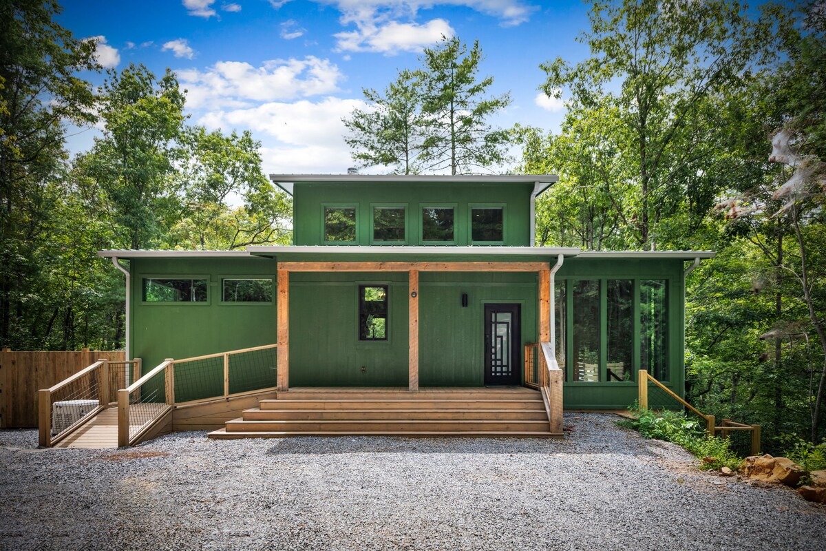 Fantastiskt helt nytt specialdesignat boende med rustika accenter överallt! Njut av hisnande utsikt över bergen genom de 18-fots fönstren. Den öppna planlösningen har moderna möbler från mitten av århundradet, en mysig gasspis och handgjorda lokala träverk. Fullt utrustat gourmetkök. Lyxigt sovrum med dubbelsäng, Roku-TV och ett spa-liknande badrum. Utanför kan dina hundar springa runt den inhägnade bakgården, medan du suger i bubbelpoolen eller samlas runt bakgårdens eldstad! Licensnummer 004696