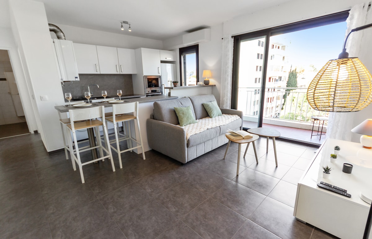 🏖️ Lyxig 2-rumslägenhet ⏱ ️ Bara 30 sekunder från stranden 🏢 Ny bostad med takterrass och oändlighetsbassäng Fri 🌳 utsikt över lugn park, sydvästlig exponering (solnedgångar🌅) Privat 🚗 parkering • ❄️ Luftkonditionering • 🛎️ Concierge 🛍️ Butiker och restauranger runt hörnet 🛏️ Dubbelsäng med kingsize-säng Högpresterande 🛜 wifi