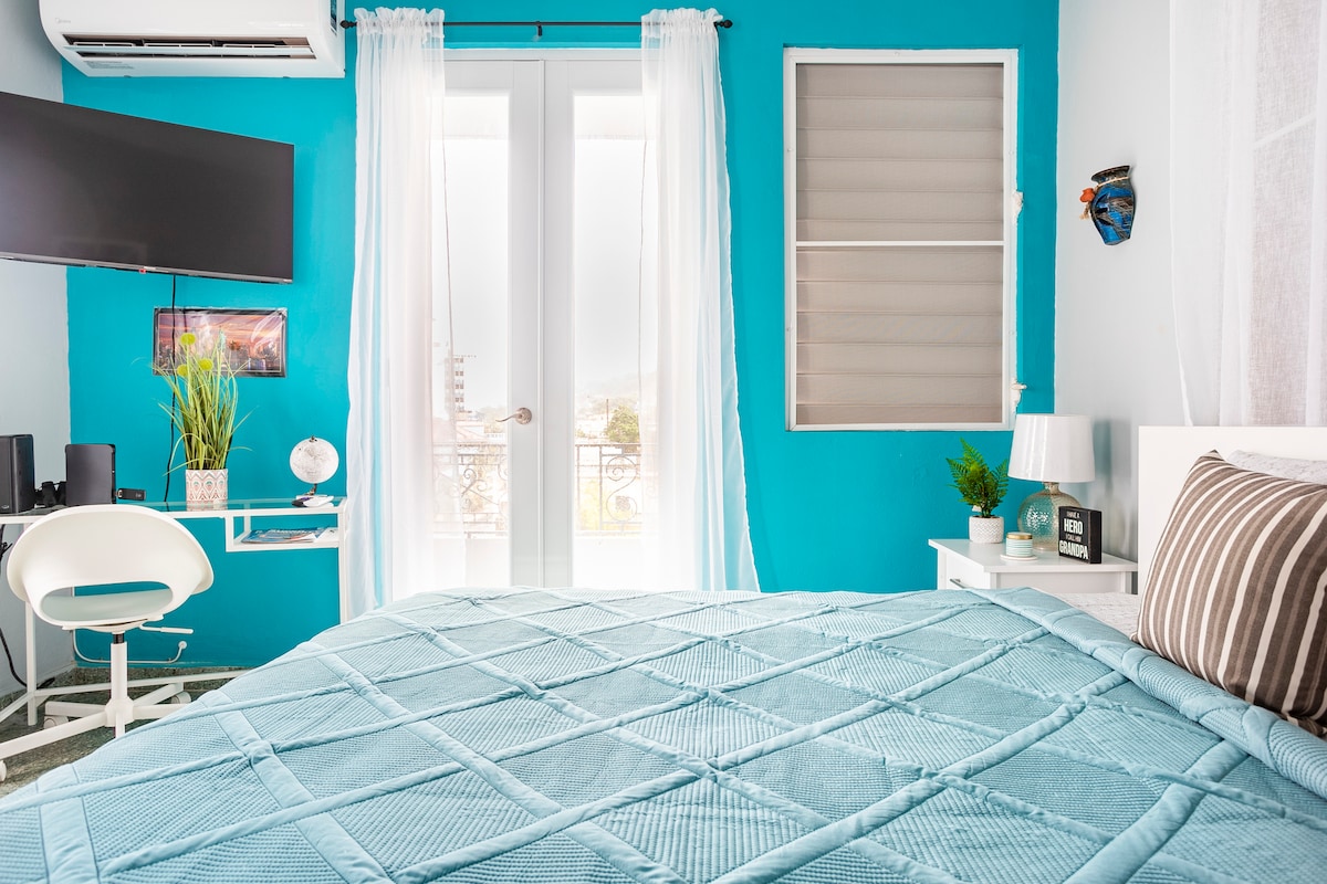 Bienvenidos a Aguadilla! Perfekt läge och bra ställe för surfare, backpackers, turister, lokalbefolkning och ensamresenärer. Vi ligger på en första våning i vårt hus byggt på 60-talet och nu ett vandrarhem med en urban atmosfär. Bra pris för det mysigaste sovrummet, luftkonditionering och utmärkt wifi. Rent, säkert och i centrala Aguadilla, ett bra alternativ för dig. Nära allt. Gallerior, Wallgreens, stränder och flygplats, gångavstånd till stranden. Passar 2. Det är Aguadillas centrum, njut av vårt stadsliv.