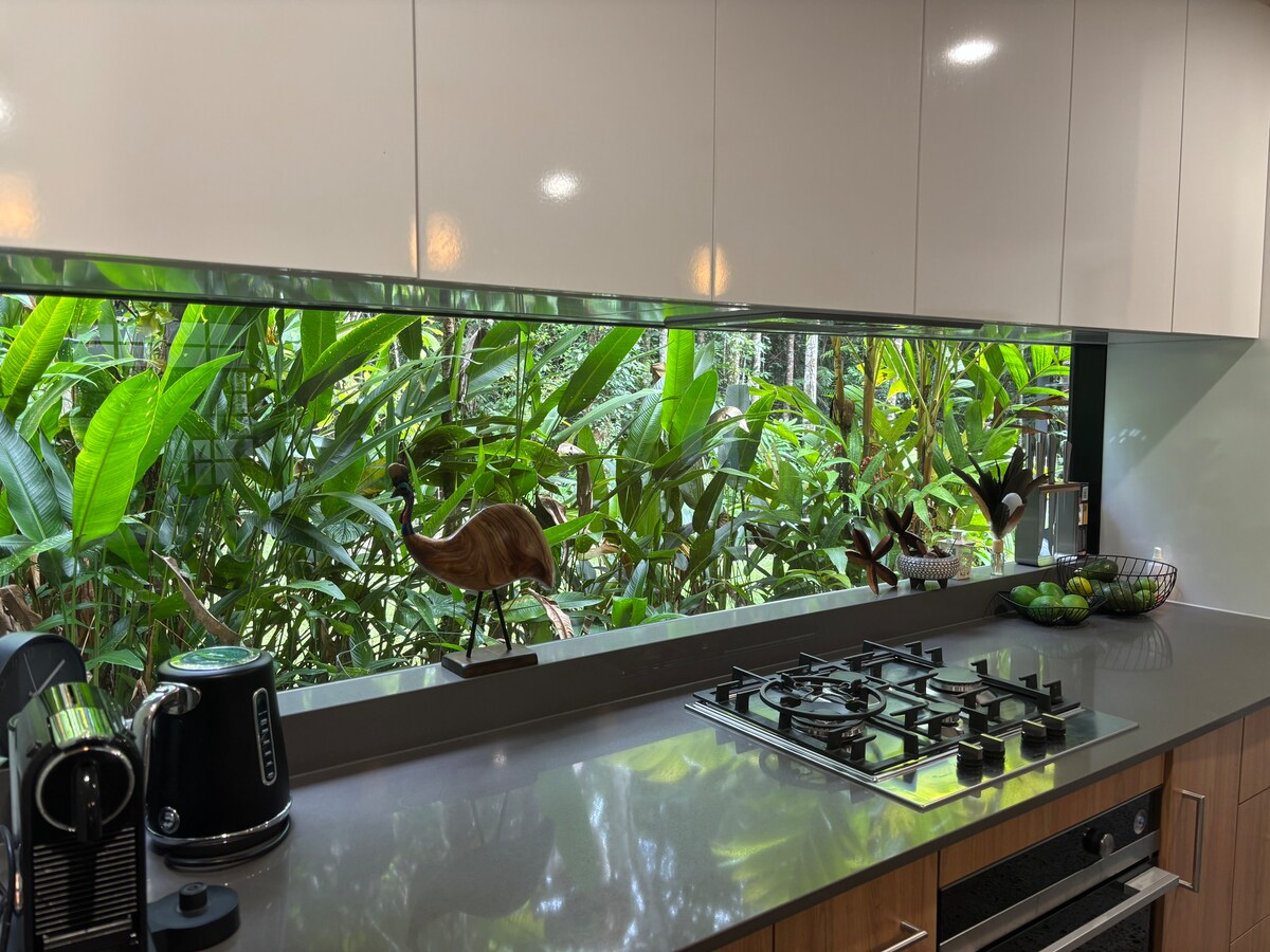 Högt uppe i bergen ovanför Cairns och djupt inbäddad i Kurandas tropiska regnskog erbjuder denna helt nya eleganta studio den perfekta flykten från det livliga livet. Gör dig hemmastadd och lämna stressen bakom dig. Njut av en promenad runt vår privata regnskog fylld tropiska trädgård. Sitt vid utomhuselden under den otroliga stjärnfyllda mjölkvägen. Eller fyll dina dagar med äventyr och varva ner i mysig komfort. Vi ser fram emot att välkomna dig till allt som tropiska North Queensland erbjuder.