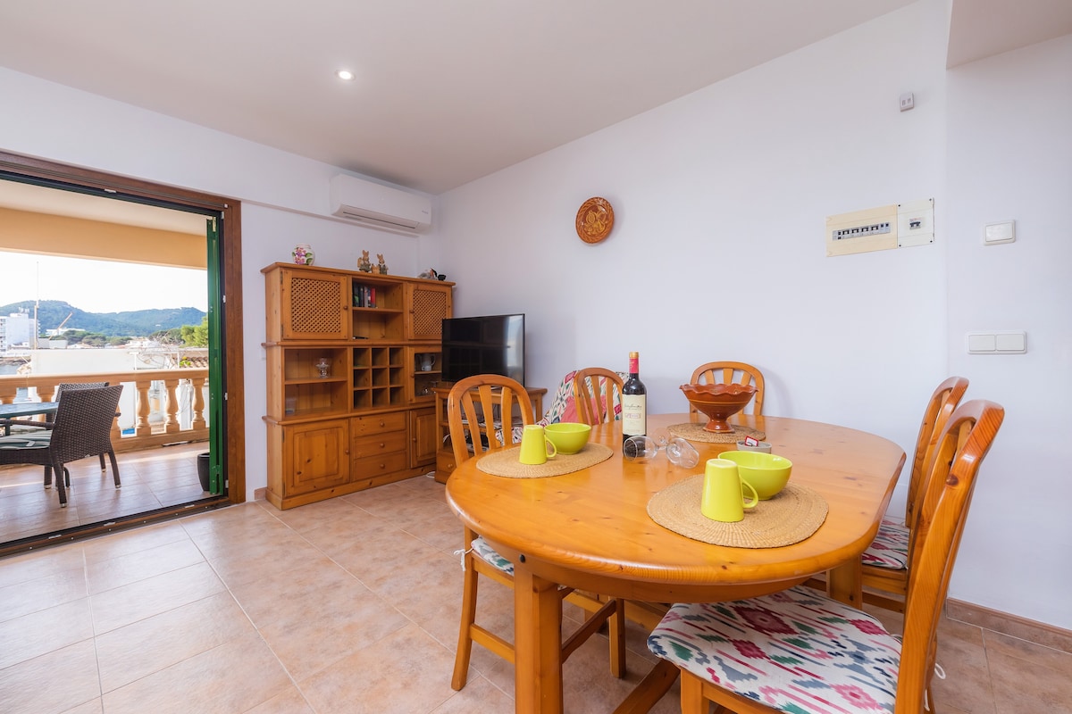 "Apartament MelPins", lägenhet på 45m2, 1 sovrum, ett komplett badrum, ett fullt utrustat kök och uteterrass. Lämpligt boende för 2 vuxna och ett barn upp till 3 år. Rymligt och ljust, totalrenoverat 2022, med mycket vackra och trevliga möbler: stort vardagsrum med fönster som öppnar sig till terrassen med utsikt över en liten skog. Avgifter för Balearernas miljöskatt måste betalas vid ankomst till lägenheten. Se informationen.