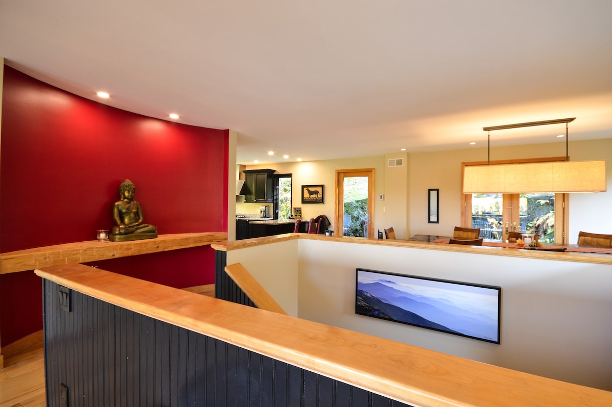 Semester/arbete på distans eller båda i detta 5 BR och 5 BA underbara miljövänligt boende i bergen. FIBER 100 meg symmetriskt wifi, en lugn arbetsyta med skrivbord, bildskärm och skrivare. Fullt utrustat kök, pingis, eldstad, stort familjeutrymme men tysta utrymmen också, och 3 sovrum med eget badrum! Bekvämt beläget nära staden och en kort bilresa till skidåkning. Detta är ett bra familjeutrymme för att återförenas eller ett utrymme att arbeta på distans för ett tempo.