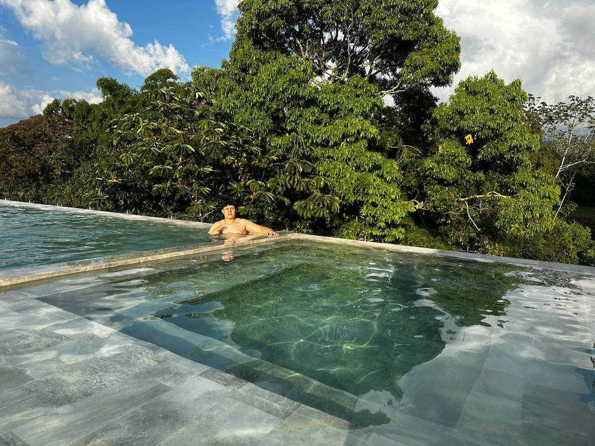 HELT PRIVAT UTRYMME Fördjupa dig i Pachamamas natur, en oas av lugn och ren luft. Skapa oförglömliga minnen i en bekväm miljö. Koppla av i jacuzzin, utforska katamaranen och beundra helt oförglömliga vyer. Bara 25 minuter från Salento, nära Circasia och Armenien, så att du kan upptäcka det bästa i regionen. VIKTIGT: Kom ihåg att vi inte har internettjänst.