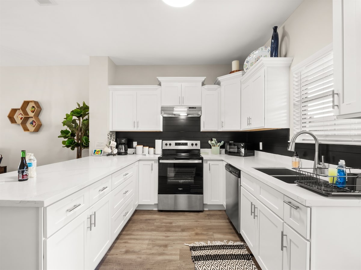 🌙 Välkommen till Midnight Moon, ett charmigt privat radhus i två våningar med glad inredning och uppdaterade bekvämligheter. Det här kommer du att älska: ✨Chic inredning 😴Sovplatser för 8 🪁Privat bakgård 🔥Eldstad utomhus 🍽️Fullt utrustat kök 💻Arbetsyta 🧺Tvättstuga Saker att göra i Lake Charles, LA: 🍔Nära restauranger 🌳Parker i närheten 🎲Kasinon i närheten 🏌️Golf 🌊Prien Lake Park 🚤Vattensport 🎭Lake Charles medborgarcenter 🍷Crying Eagle Brewing Company 🛍️Lake Charles centrum ❌Inga fester