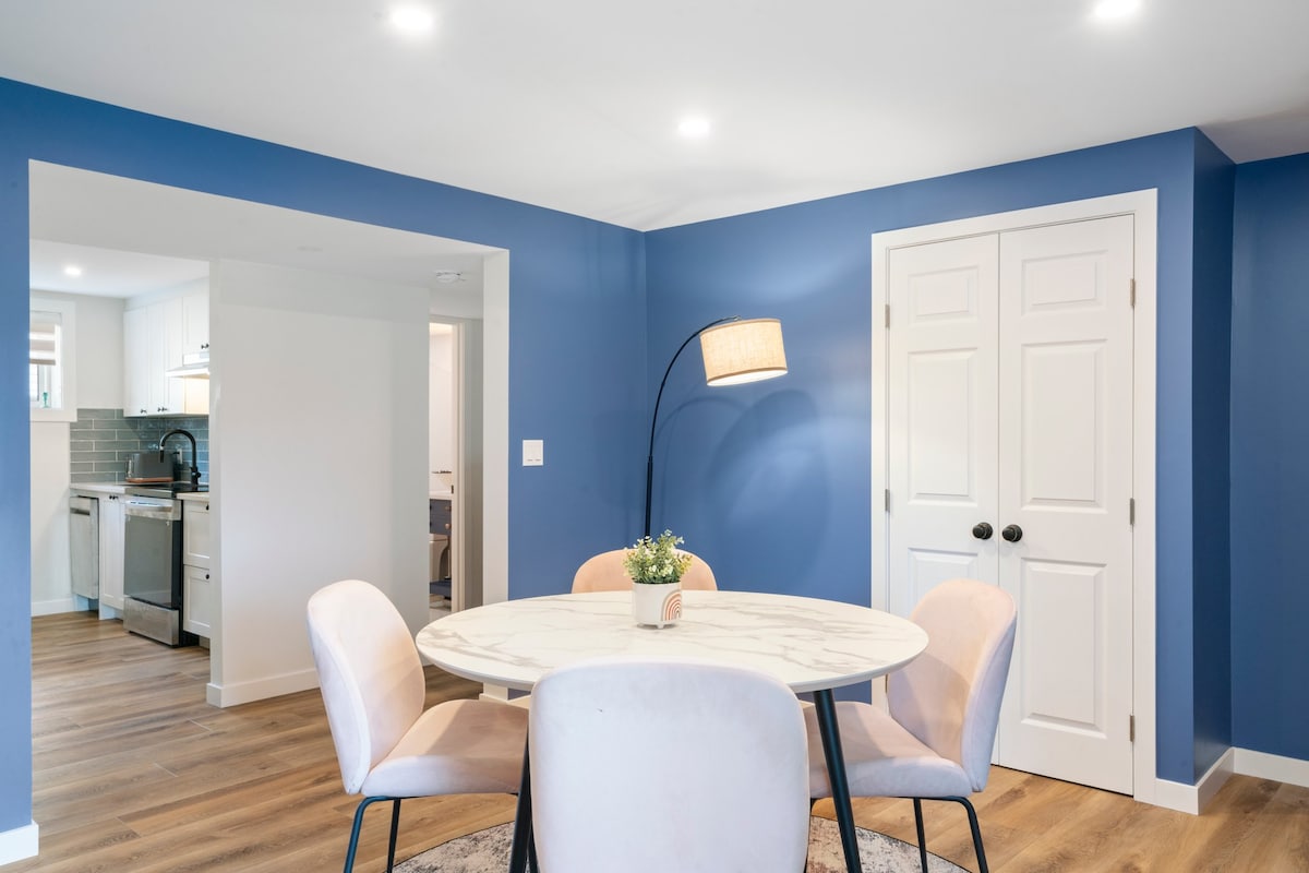 Välkommen till ditt hem hemifrån! Denna eleganta och bekväma svit är perfekt för proffs som söker ett modernt utrymme några minuter från centrum. Bekvämt beläget bara 10 km från flygplatsen och 5 km till centrum. Du hittar en busshållplats bara några kvarter bort, tillsammans med ett kafé, Dairy Queen, vinbutik och en pizzeria — allt inom gångavstånd. För utomhusälskare ligger Confederation Park bara 1,5 km bort. Obs: Gäster måste ha 5 tidigare★ omdömen ✨ Rabatter för minst 2 nätter!