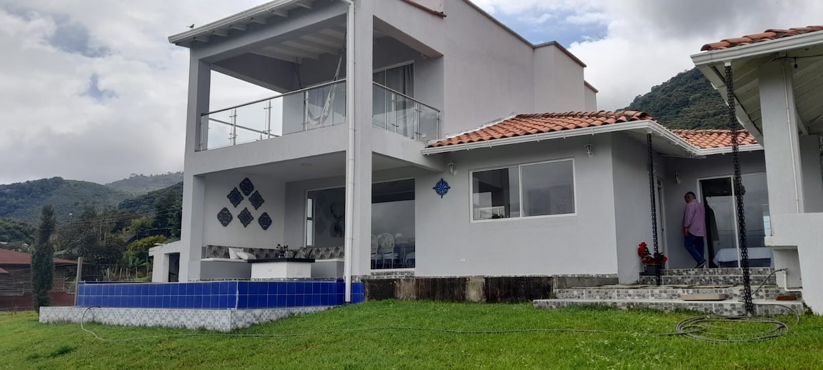 Familjehus på landet, perfekt plats för lugn, beläget bara 15' från sjön Calima, inom Bosques de Calima. Den har en oändlig prívate pool, 3 terrasser, utsikt över skogen, grillplats, 4 stora sovrum, 4,5 badrum, modernt loftstil kök, vedeldad öppen spis, Wi-Fi, 24/7 säkerhet, 5-a-side fotbollsplan, trädgårdsdesign, 7 parkeringsplatser. Utöver detta har paketet ett klubbhus, med turkisk, sjöutsikt, grillplats, socialt rum, fotbollsplan och lekplats för barn.