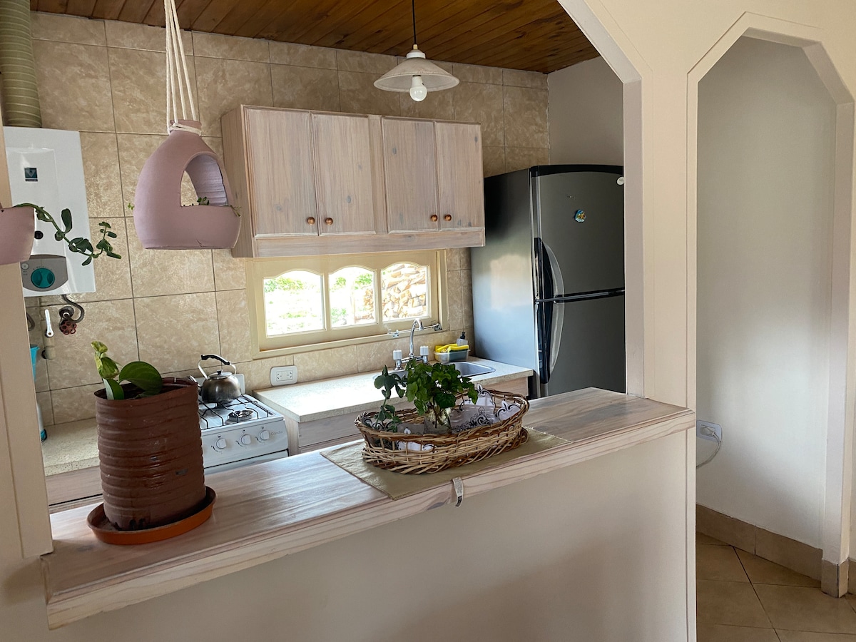Koppla av i detta unika och lugna boende på en gård i Uspallata. Perfekt för att koppla av, du kommer att njuta av en exklusiva omgivningar bland skogar och odlingar framför Cordillera, bara 3 km från centrum av Uspallata. Husets interiör är helt renoverad, den har alla tjänster, rymligt och fullt utrustat kök. Alla miljöer är bekväma och ljusa. Du kan också ha ved för den inre kaminen och den yttre kaminen. Wifi Starlink.