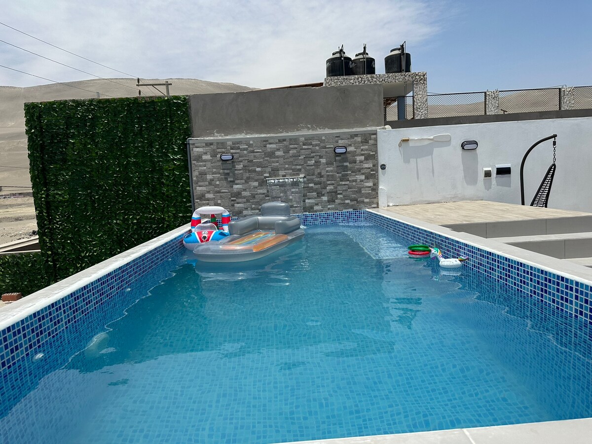 Stort strandhus hyrs nära vattenparken - Camaná * Fullt möblerat * kök implementerat * 8×4 pool och barnskate * Kinesisk låda grillplats * Lekplats (taca taca, gungor, groda, etc.) * Tvättomat * 4 sovrum och 4 badrum. * Avsändare * Garage för 4 fordon * WiFi och DirecTV * Varmvatten med sol och elektrisk varmvattenberedare