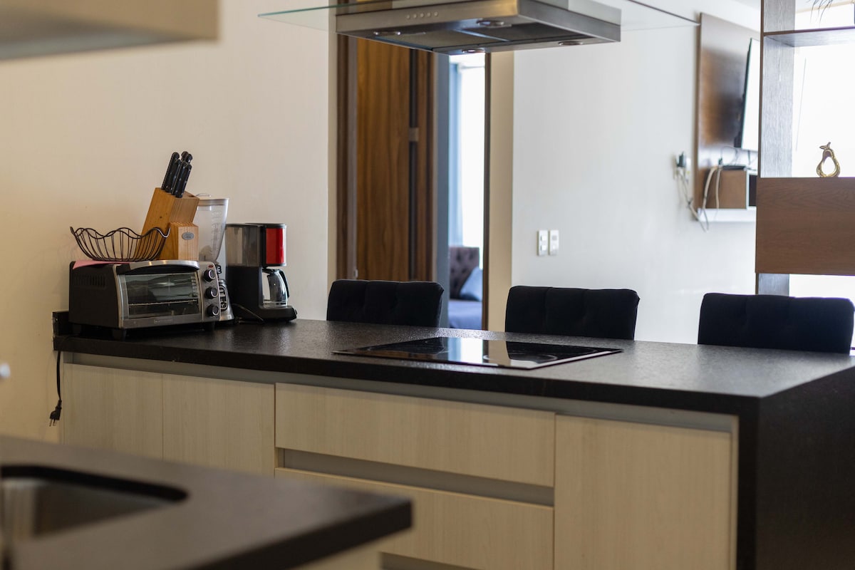 Vakna till ljudet av havet och en fantastisk utsikt från din privata balkong i denna moderna strandstudio i Las Glorias. Perfekt för par eller ensamresenärer, erbjuder det en king size-säng, snabbt WiFi, ett utrustat kök och direkt tillgång till stranden. Koppla av i poolen på 30:e våningen eller njut av bekvämligheter som på en resort: bubbelpooler, gym med mera. Minuter från Malecón och Versailles, men med den perfekta lugnet för att koppla av.