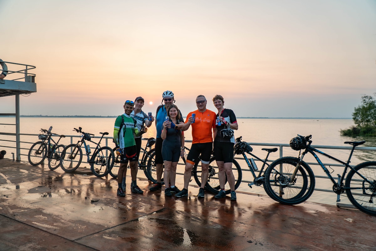 5 av 5 i genomsnittligt betyg, 11 omdömenCykla genom Bank of Tonle Sap Lake vid solnedgången