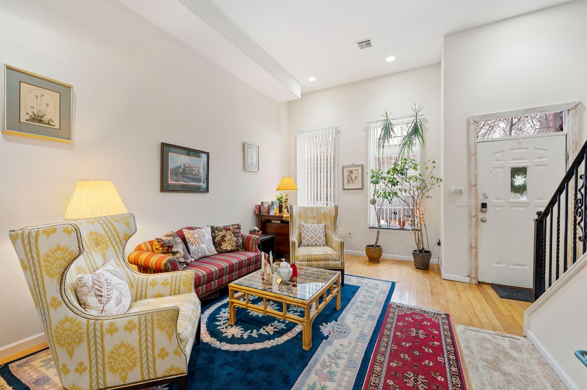 Njut av vår mysiga, familjevänliga Fishtown retreat. Detta eleganta hem med 2 sovrum och 2 badrum inkluderar tvättstuga, en charmig bakgård och varm inredning för en avkopplande vistelse. Fördjupa dig i Fishtowns kreativa energi — kaféer, unika butiker, musikställen, konstställen, barer och restauranger ligger i närheten. För historieälskare väntar enkel tillgång till Old City, Liberty Bell och Independence Hall. Lägg till bekväm gatuparkering och ett utmärkt läge, och du har den perfekta Philly-hemmabasen.