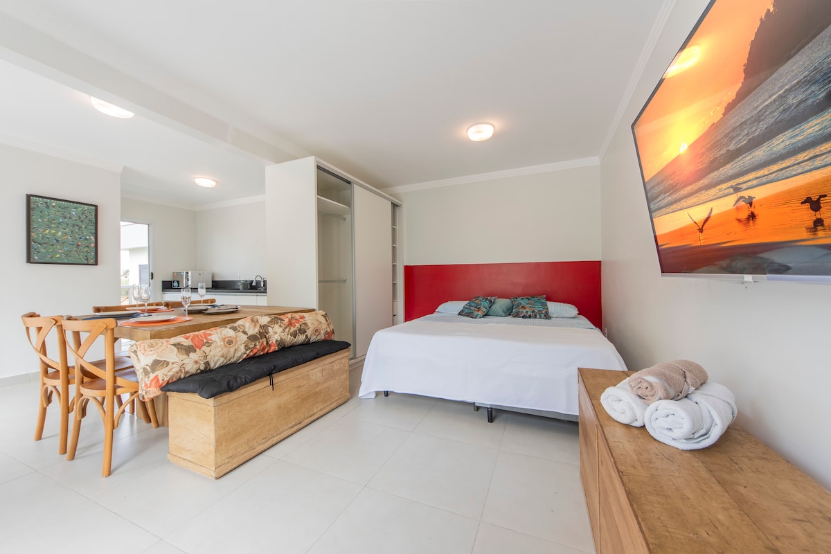 Rymlig och modern🌊 studio vid havet i New Campeche! • Utmärkt utrymme, fullt integrerad miljö, med utrustat kök och tvättmöjligheter; • Queen-säng; • Balkong med utsikt; • Byggnad med pool och gym; • Utmärkt läge, med bra restauranger och infrastruktur runt omkring, njut av bekvämligheten att göra allt till fots; • Perfekt för par, ensamma resenärer och de som vill njuta av stranden med stil. Njut av säkerheten och lugnet i det mest eftertraktade grannskapet i södra delen av ön!☀️