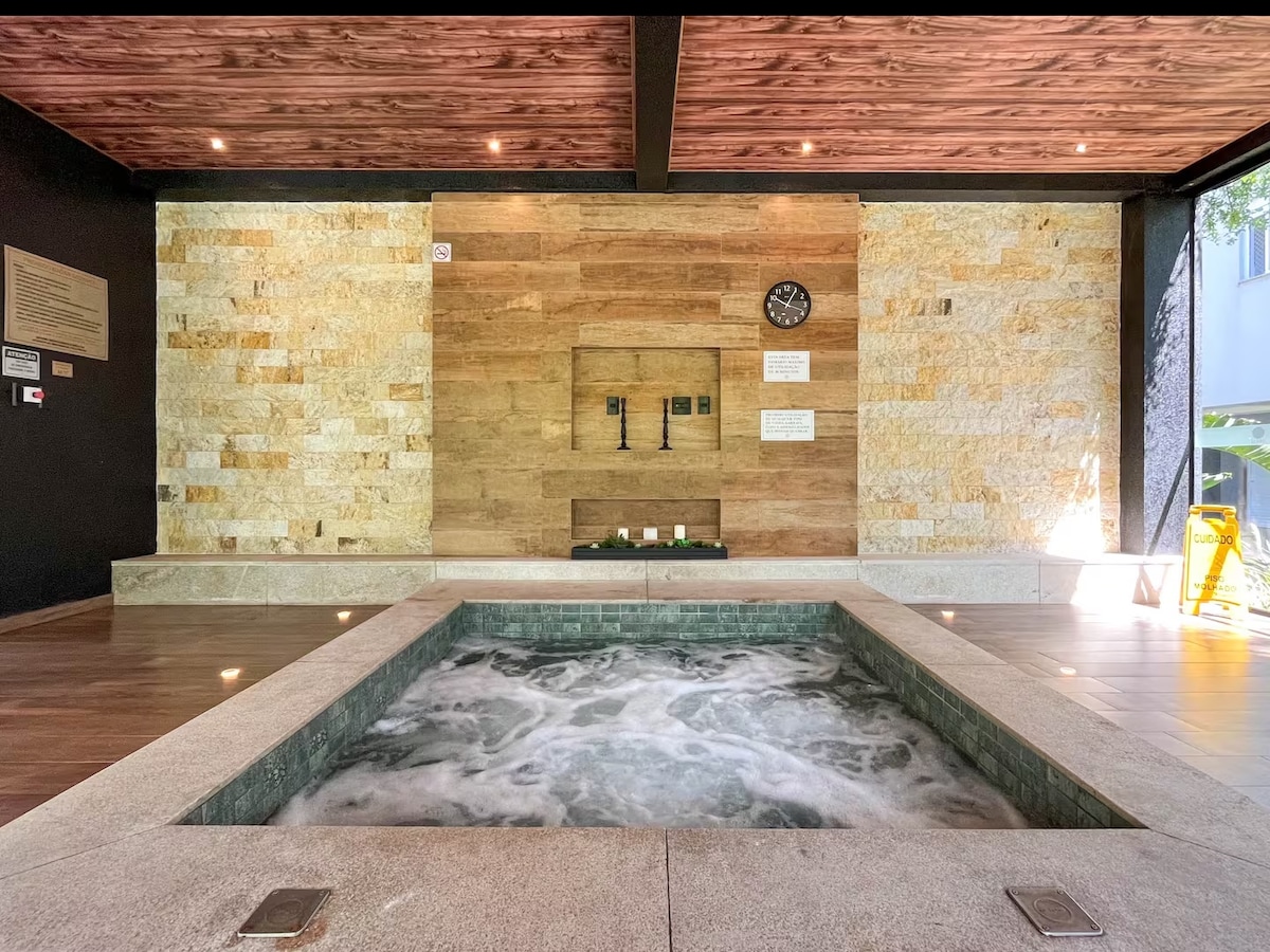 Rymlig takvåning med total avskildhet, havsutsikt, jacuzzi och grillplats framför Campeche-stranden, en av de vackraste stränderna i Florianópolis! Att tillbringa din semester i Thai Beach Home Spa-condominium är som att vara på en 5-stjärnig resort! Med uppvärmd inomhuspool, oändlig utomhuspool, inomhus- och utomhusjacuzzi, gym, lekplats, biograf och frodigt gemensamt område! Centralt beläget, nära restauranger, bagerier, stormarknader och butiker.