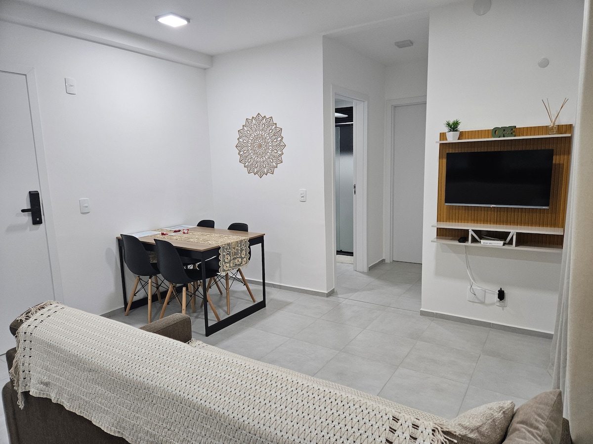 Omfamna enkelhet i detta lugna och väl belägna ställe. Perfekt för chefer, studenter, par eller små familjer. Ny, bekväm lägenhet med en underbar utsikt. Fastighet med skräddarsydda möbler och nya apparater, luftkonditionering och internet. Bra ställe: 800 meter från Marisol 1,5 km från SCAR Cultural Center 1,8 km från köpcentret 2,0 km från WEG 2,5 km från Duas Rodas 3,5 km från Via Verde. Lägenheten erbjuder: närbutik öppen dygnet runt, hiss, pool, vandringsled, zen-utrymme och lekplats.