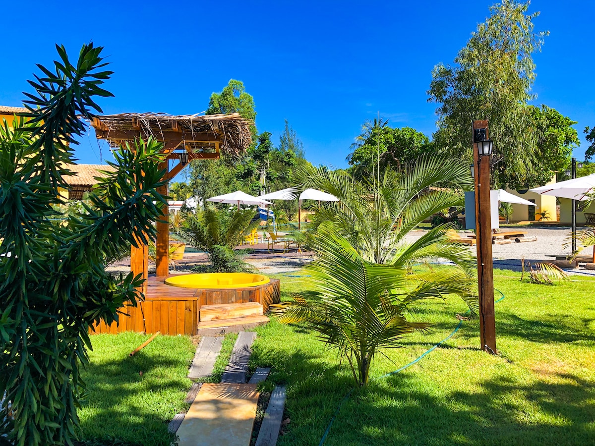VILA ECO ett förslag på boende och välbefinnande, inbäddat i naturen! Lugn och ro på Robalo-stranden. Vi är ungefär 3 minuter från det bästa området för havsbad och nära Orla Por do Sol för att njuta av floden. Vårt utomhusområde delas med andra gäster och erbjuder fritidsalternativ, pool, grillplats, vedeldad ugn, kokospalmer och parkering.