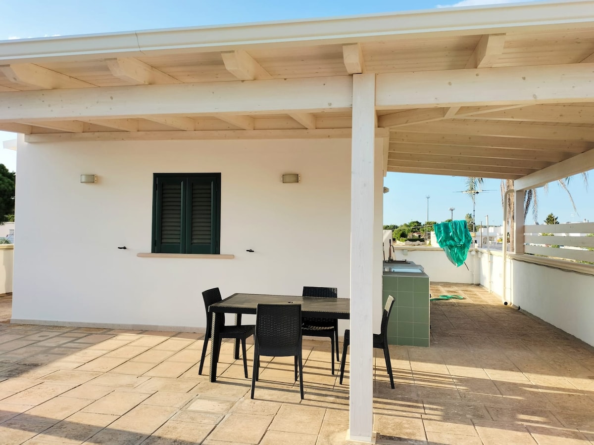 Upptäck din oas av lugn i Salento! Denna fantastiska oberoende villa med trädgård, bara 200 meter från havet, är perfekt för dem som vill koppla av. Den är fördjupad i naturen och erbjuder ljusa och välkomnande miljöer, inredda med omsorg. Den privata trädgården, full av medelhavsväxter, är idealisk för utomhusluncher och stunder av avkoppling. Nära de vackraste stränderna i Salento, är det den perfekta tillflyktsorten för familjer, par och vänner som letar efter en oförglömlig semester.