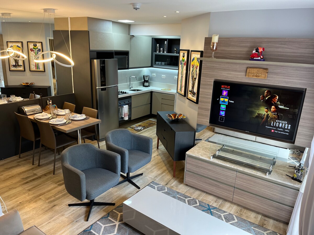 Perfekt för par och familjer! Öppnade i juli 2023! Lägenhetshotellet har en balkong med jacuzzi och en spektakulär utsikt över solnedgången, 2 smarta TV-apparater, ett kök (minibar, spishäll, mikrovågsugn), en egen toalett och badrumsartiklar. Hotellet erbjuder gym, bastu, privat parkering, trädgård, terrass, restaurang, bar, uppvärmd infinity-pool, rumsservice och reception som är öppen dygnet runt. Detta är den del av Campos do Jordão som våra gäster gillar bäst! Husdjursvänligt upp till 10 kg!