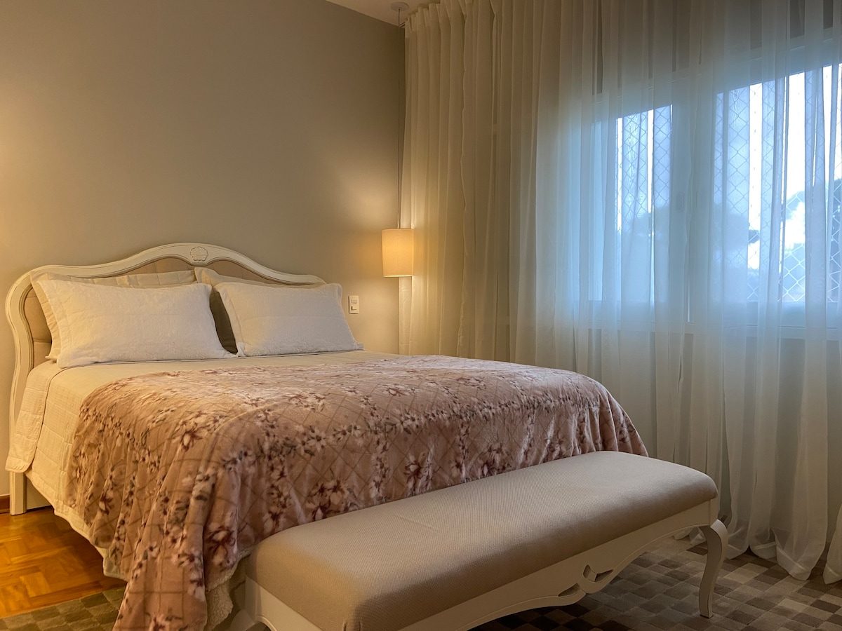 Upptäck denna charmiga lägenhet i Campos do Jordão, belägen i Vila Everest, med balkonger med vacker utsikt. Bara 4 minuter med bil eller 12 minuters promenad från det största turist- och matområdet. Njut av ett fullt utrustat kök med alla redskap, airfryer, kaffebryggare och mikrovågsugn, plus en bekväm säng. Det inhägnade bostadsområdet erbjuder en lounge, ett TV-rum, ett gym och parkering. Nära stormarknad, apotek, tvättomat, chokladfabriker och det berömda Sans’Souci-caféet.