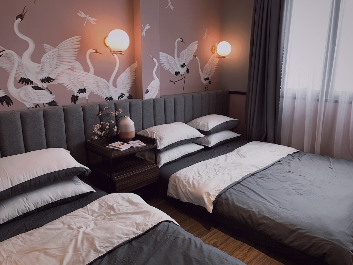 Triple room is located on the 2nd floor of the hostel, including 1 big bed and 1 single bed, with an outside balcony, you can enjoy the wonderful natural scenery in front, you can sunbathe because the room is in the east. We will assist you to book a tour, book a ticket, call a taxi or Grab, you can join us to use cozy meals to understand more about the customs of Vietnamese people. Come and experience with us.