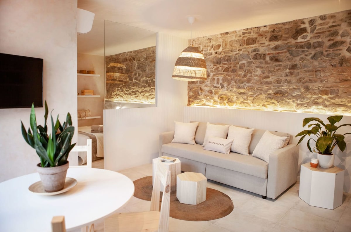 Exklusiv, modern och ljus lägenhet, med öppen utsikt över havet, landsbygden och byn från sin panoramaterrass som vetter söderut, utrustad med solstolar. Perfekt för 4 personer, det har två sovrum med 150 cm sängar, ett skrivbord för distansarbete och snabbt Wi-Fi, ett fullt utrustat kök med en ö och en Smart TV. Bara 10-15 minuters promenad till centrum och stranden, det har luftkonditionering, privat parkering och en hiss. En perfekt tillflyktsort för att njuta av oförglömliga solnedgångar.