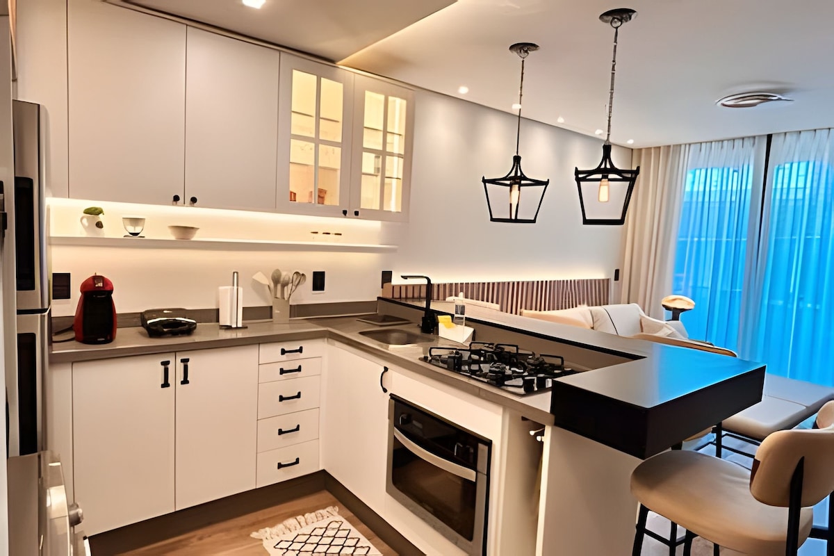 Kom och njut av underbara stunder. Lägenheten ligger bredvid turistattraktionerna: pariserhjulet; Mundo A Vapor; Space Adventure (NASA Museum); Modemuseum och Havan-butiken. Den har 100 m² privat yta, ett komplett kök med grillplats. Ett stort vardagsrum med öppen spis, varm och kall split; Smart-TV med Netflix, superbekväm soffa och balkong med utsikt över turistattraktionerna (med ljudisolering) och privat parkeringsplats. Perfekt för par och familjer.