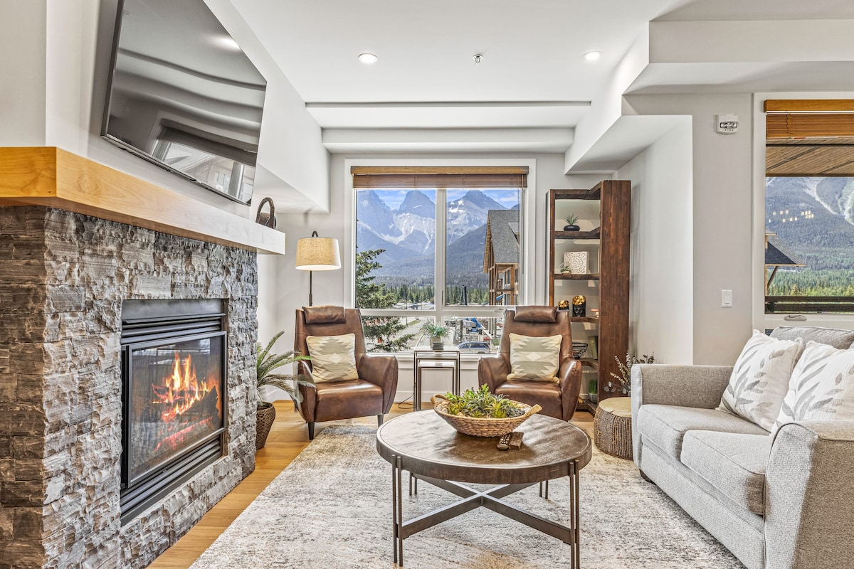 Välkommen till denna fantastiska, 1 säng 1 badrum, som ligger i hjärtat av Canmore, Alberta. Omgiven av den bästa utsikten över bergen i Canmore erbjuder denna fastighet fantastisk utsikt över Three Sisters, Mount Lawrence Grassi och hela Rundle bergskedjan. Efter en lång dag, kom hem för att njuta av en av utomhus bubbelpooler, koppla av framför den elektriska eldstaden eller sitta på vår soliga balkong och njuta av utsikten.
