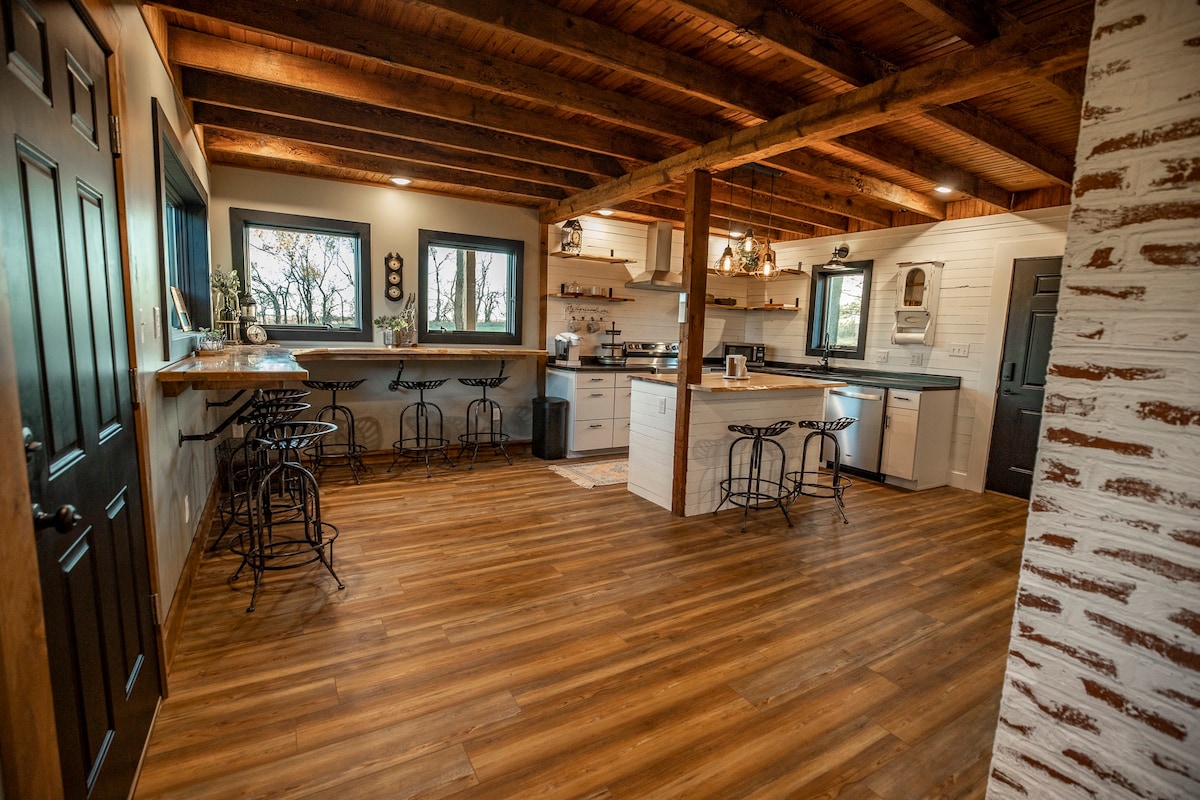 A cozy retreat tucked away in our backyard designed especially for short term & vacation rentals. Perfect for solo travelers or couples, this thoughtfully prepared space includes a comfy queen bed, pull out futon, stocked kitchenette, and peaceful porch surrounded by nature. Enjoy modern comforts in a serene, minimalist setting—just minutes from local dining, Bethel College, and I-135. Experience tiny living with big charm at The Hidden Den!