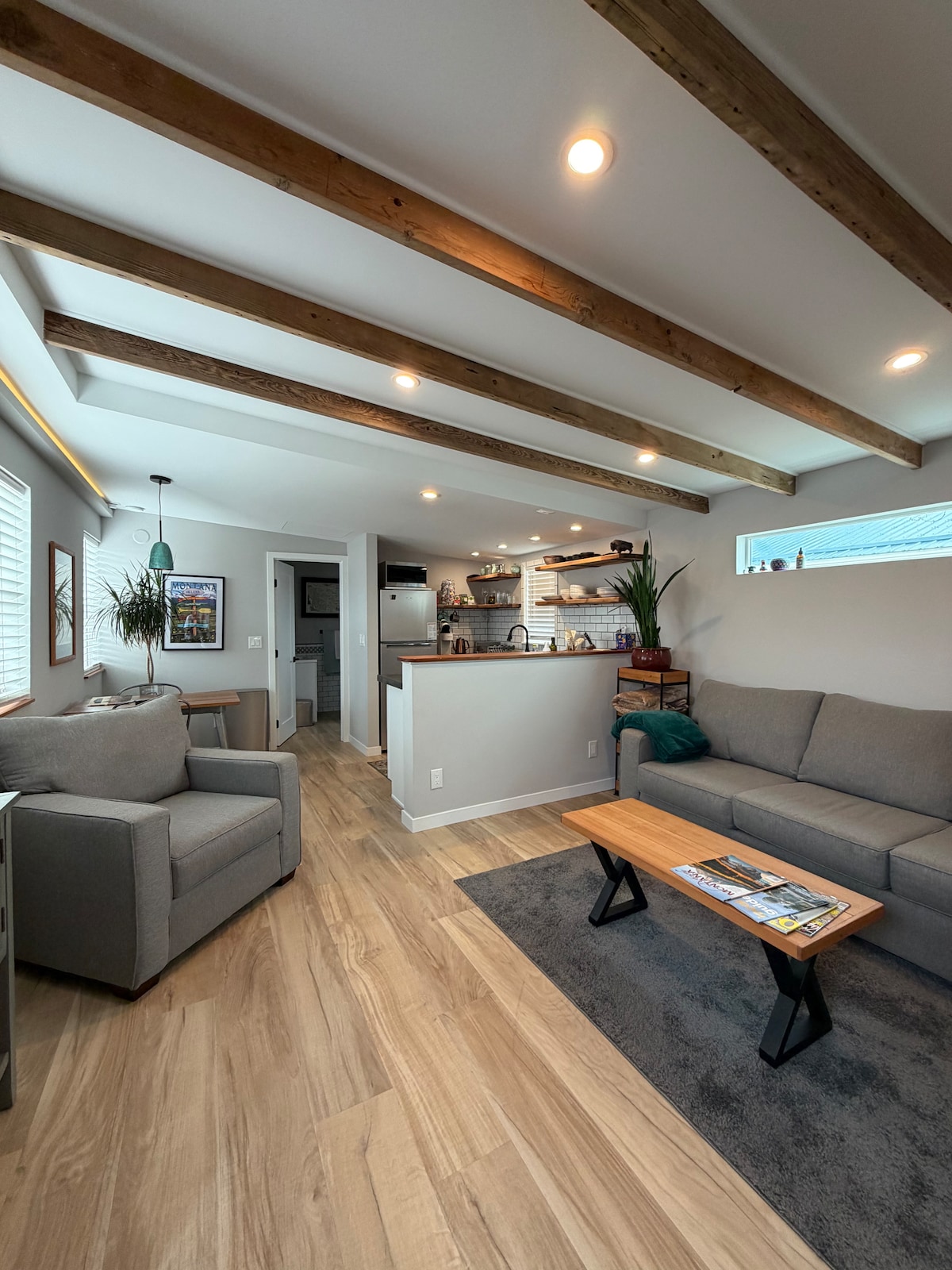 En nyligen ombyggd gästsvit mitt i Helena. Sviten har noll steg in, en dubbelsäng, garderobsutrymme, högkvalitativa sängkläder, mikrovågsugn, minikyl, kaffekanna, luftkonditionering och naturligt ljus i hela. En bekväm, bred soffa med sängkläder kan användas i vardagsrummet för en extra säng. Helt ny dusch och bytt golv i alla rum. Enkel tillgång till I-15, en snabb bilresa till centrala Helena som är fullt av mikrobryggerier, restauranger och shopping, och nära Capitol.