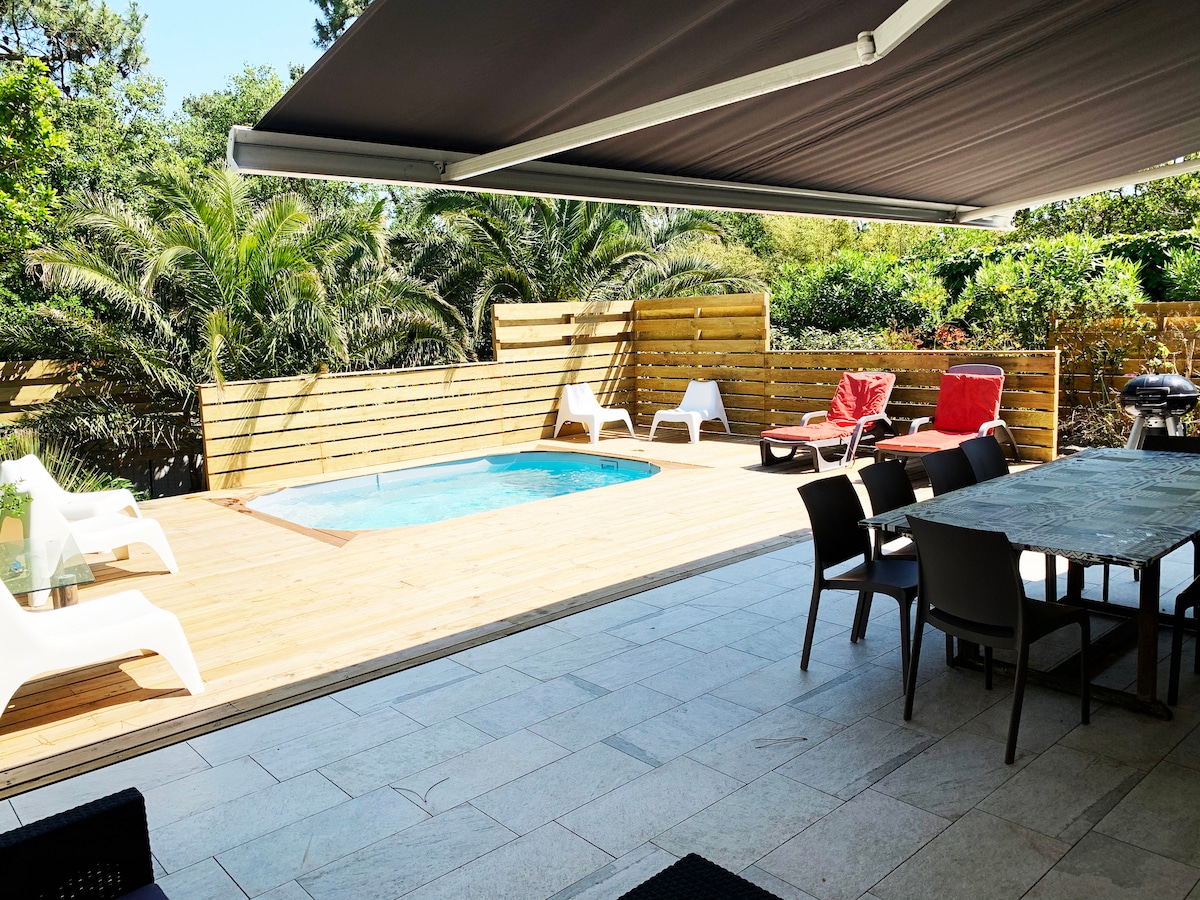 Kom och upptäck Capbreton i vår fridfulla oas, i hjärtat av den gyllene triangeln! Denna eleganta lägenhet med pool, ett stenkast från stränder, barer och hamnen garanterar oförglömliga stunder med vänner eller familj. Våra två rum öppnar upp till en stor terrass med bioklimatisk pergola, matplats och vardagsrum. BRA ATT VETA: Privat ★ parkering och garage ★ Livsstil till fots eller på cykel ★ Sängkläder och handdukar tillhandahålls ★ 1 km från Hossegor Huvudvillan ingår inte och är obebodd.