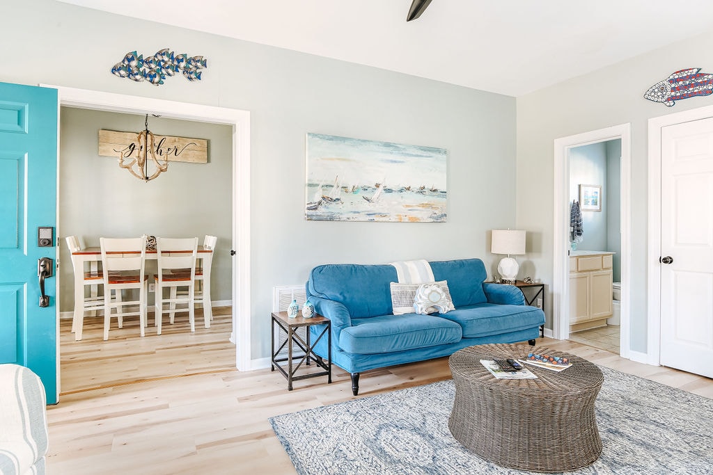 Du kommer att uppleva magin i Cape Charles Historic District i ett hem där modern bekvämlighet möter klassisk charm! Sunshine Rays är din främsta familjesemesteruthyrning, konsekvent betygsatt 5 stjärnor av gäster som berömmer dess renlighet, omtänksamma strumpor och otroliga bekvämligheter. Perfekt för upp till åtta gäster, du ligger på en lugn, vänlig gata. Du kommer att njuta av en lugn promenad till Cape Charles strand och nära Central Park och de livliga butikerna och restaurangerna på Mason Avenue.