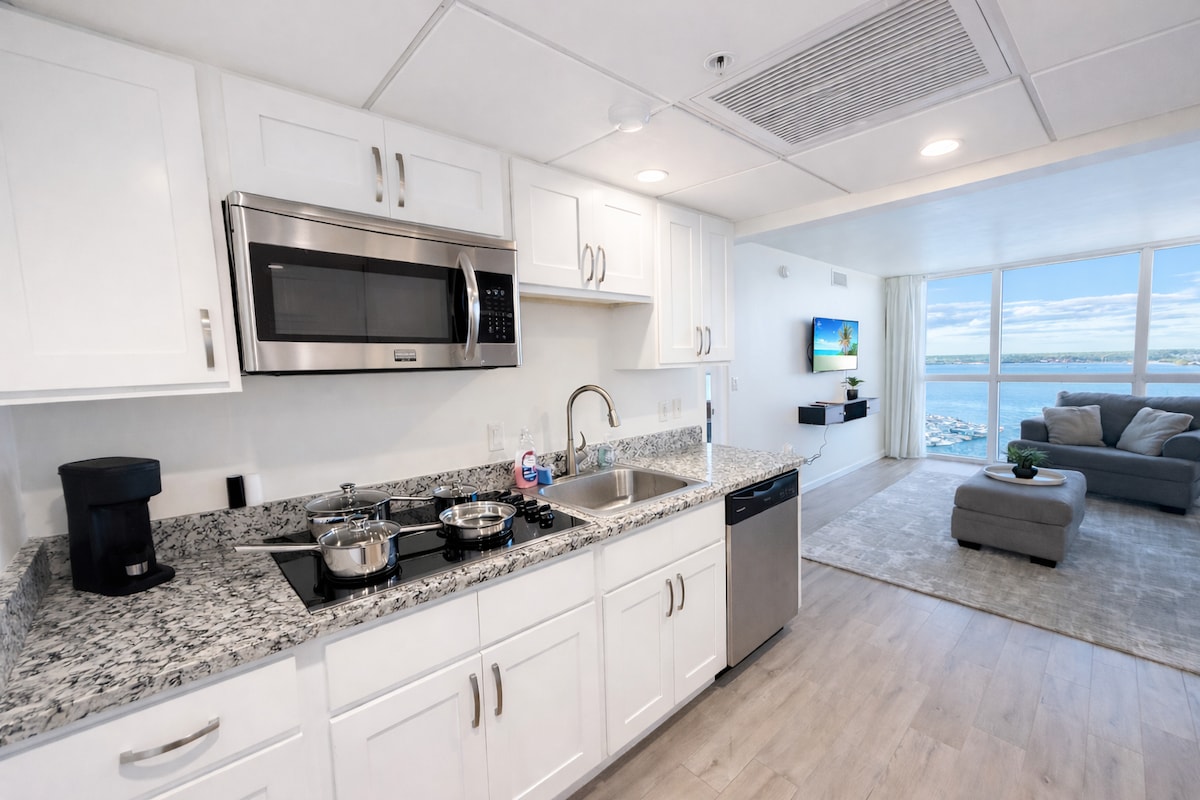Välkommen till din Luxe Living-semester! Upplev den perfekta blandningen av komfort och sofistikering i denna Executive King Suite med utsikt över staden, belägen i hjärtat av Downtown Fort Myers. Denna moderna lägenhet med 1 sovrum har en plysch king-size säng och en queen-size utdragbar soffa, perfekt för par, yrkesverksamma eller små familjer. Njut av stadsutsikt, ett fullt utrustat kök och tillgång till premium bekvämligheter bara några steg från de bästa restaurangerna, shopping och underhållning i Fort Myers.