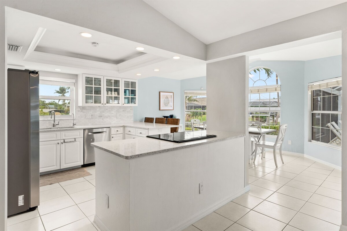 Välkommen till SunLit SeaWay House, din lyxiga flykt från södra Florida i vackra Cape Coral, Florida. Detta professionellt inredda hus med 3 sovrum och 2 badrum vid vattnet erbjuder allt för en oförglömlig semester. Njut av omedelbar avkoppling med vår privata uppvärmda saltvattenpool och bubbelpool, generösa brygga och direkt, snabb tillgång till bukten för båtliv och fiske direkt från bakgården. Boendet är noggrant uppdaterat med elegant kustdekor, nya kvartsbänkskivor och en expansiv täckt