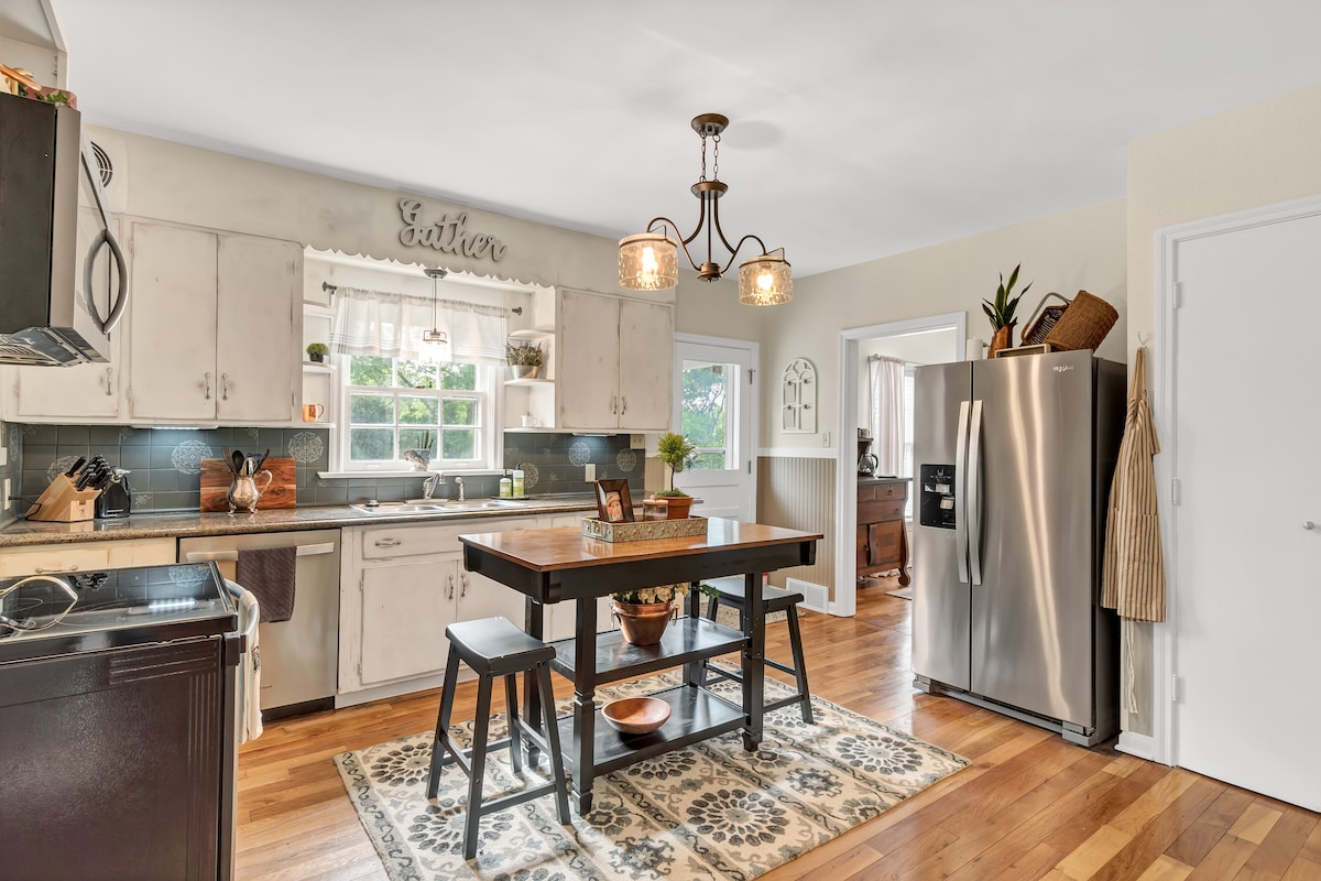 Njut av lugnet i denna moderna gårds charm! Skräddarsydda minuter från centrala Cape. Koppla av utomhus runt eldstaden, rosta marshmallows och titta på solnedgången. Avsluta natten med ett långt dopp i bubbelpoolen. Börja morgonen på gungstolarna på verandan och njut av en soluppgång. Öppet koncept, fullt utrustat kök, 3 Bd. inklusive King master/badrum, 2 Queens med fullt gästbad. Nära Trail of Tears och gångavstånd till klassisk dykbar/hamburgare