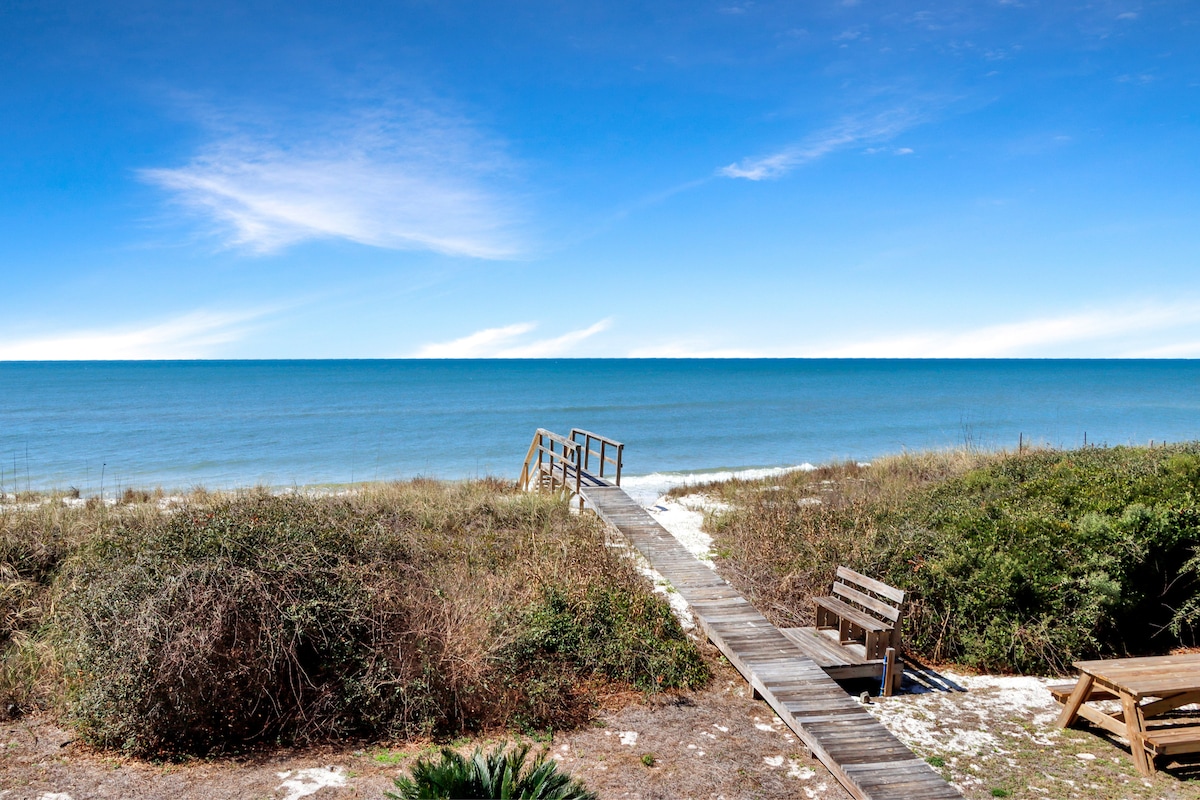 Ren och färgglad kustretreat med 3 sovrum och 2,5 badrum, med sovrum på övervåningen för avskildhet och lugn separation från det huvudsakliga vardagsrummet. Boendet rymmer upp till 9 gäster, vilket gör det till en perfekt tillflyktsort för alla som vill njuta av Floridas bortglömda kust. Utomhus, njut av önskvärda WindMark Community och tillgång till 2 separata pooler, cykelspår och privat golfvagn väg. Boendet ligger mindre än 2 minuter från stranden och inkluderar användning av en 4-sitsig golfbil om så önskas.
