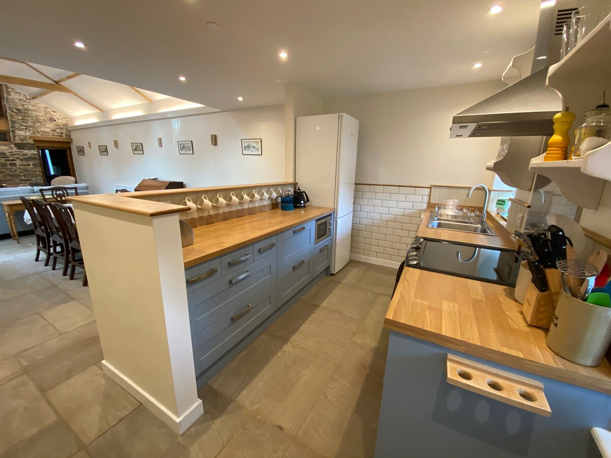 Ny lada omvandling. Jag har försökt behålla karaktären. Inredningen är Agri/industriell, återanvändning av så mycket av råvarorna runt gården. Den har tre dubbelsängar alla med eget badrum. 1 x Mycket stort sovrum på övervåningen med soffa och balkong och 2 mindre sovrum på bottenvåningen. Varje rum har en TV och wifi. Det största vardagsrummet har ett kök, ett bord, en stor L-formad soffa och soffbord: ett utomhusbord och stolar, grill och ett täckt område för förvaring av cyklar och en EV-laddare (50p/kw) etc.