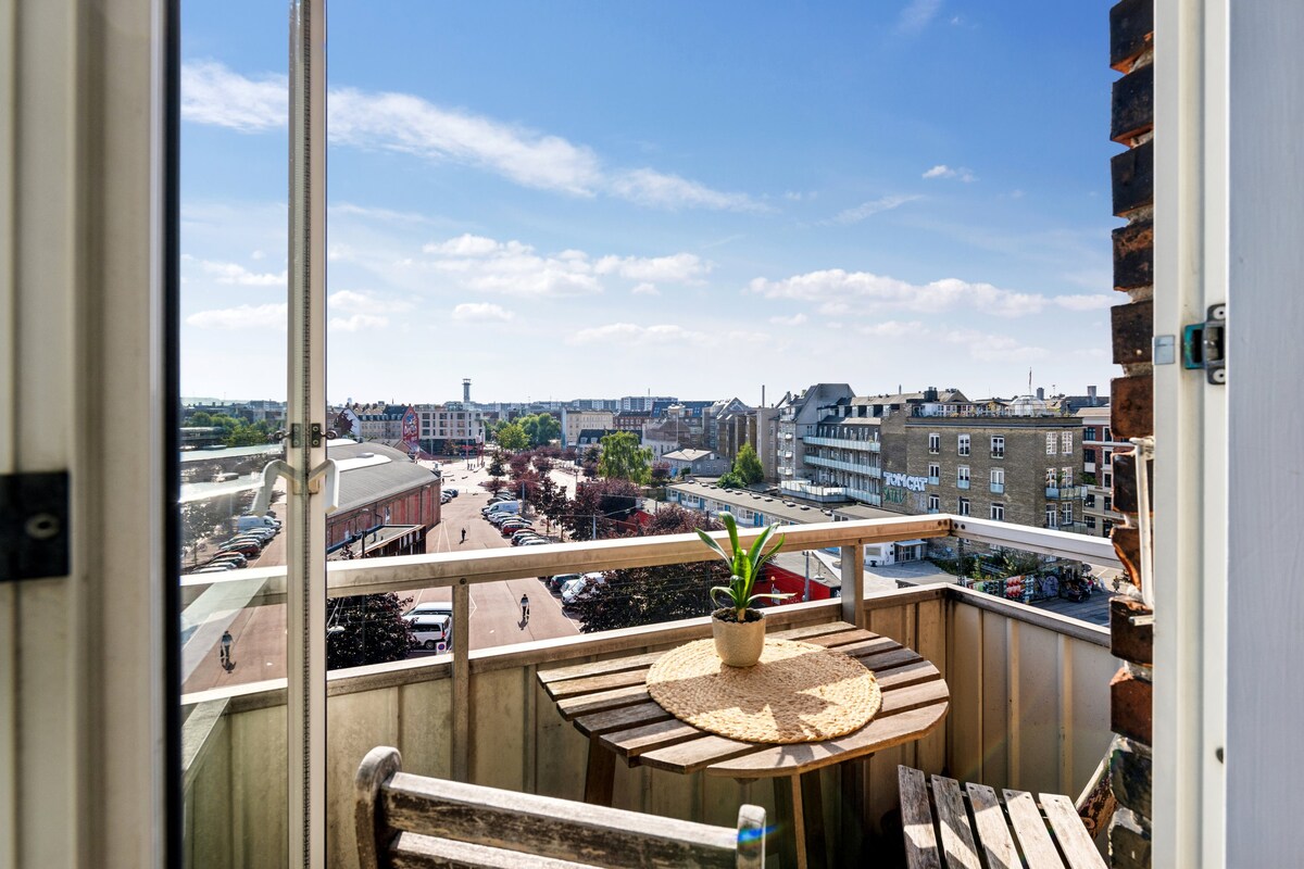 Ljus och rymlig lägenhet i Köpenhamn med balkong