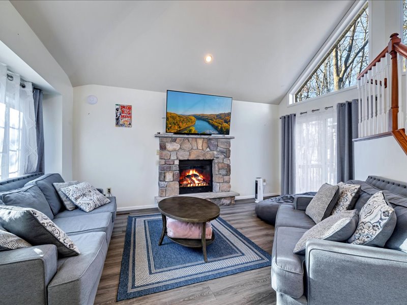 Escape to this newly renovated mountain retreat in the private Indian Mountain Lakes community! Enjoy abundant wildlife from the secluded yard, soak in the hot tub, or gather around the fire pit. Inside, unwind in the open living space with a modern kitchen, two stylish bathrooms, and a game table for pool & ping pong. There is also skeeball, pac man and jumbo connect four. Community perks include pools, lakes, beaches, tennis, and more. *Minimum age to rent is 22*