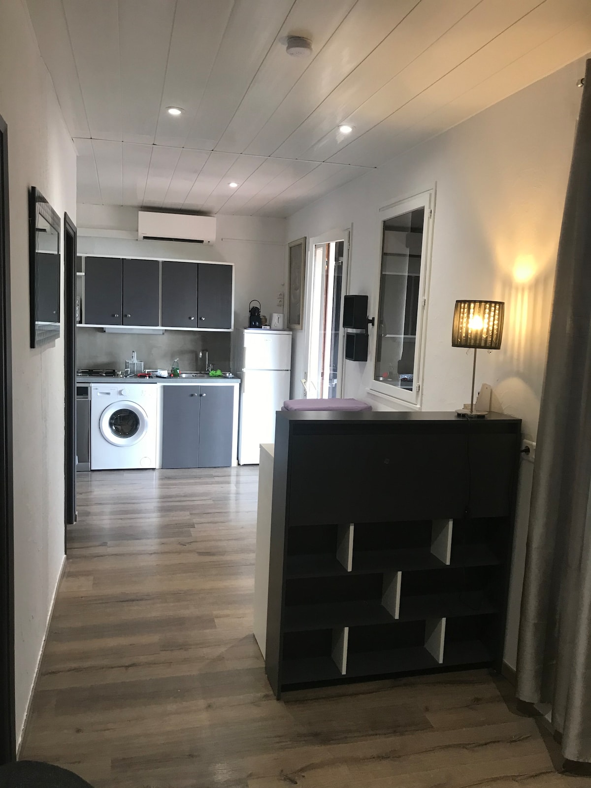Trevlig lägenhet på 50 m2 i en villa på markplan, lugnt belägen vid ingången till Propriano, 5 minuter från stränderna. Boendet har ett stort vardagsrum med fullt utrustat amerikanskt kök, matplats, badrum med dusch, toalett och bidé. Ett rum med en stor säng (lakan och handdukar ingår). Perfekt för en paus eller en vistelse för par. Den har en vacker terrass och en trädgård. Gratis parkering finns tillgänglig, liksom wifi.