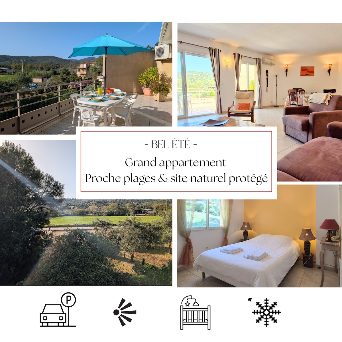 Lyxvilla på 75 m2, byggd i hjärtat av en inhägnad trädgård på 600 m2 med panoramautsikt över bergen och Ajaccienbukten med ett privat spa som är tillgängligt året runt och uppvärmt. Helt utrustad och med hemautomation, består villan av 2 stora sovrum, var och en med eget badrum (dusch + badkar), samt en separat toalett. Sängarna är bäddade vid ankomsten och badlakan / hygienprodukter tillhandahålls.