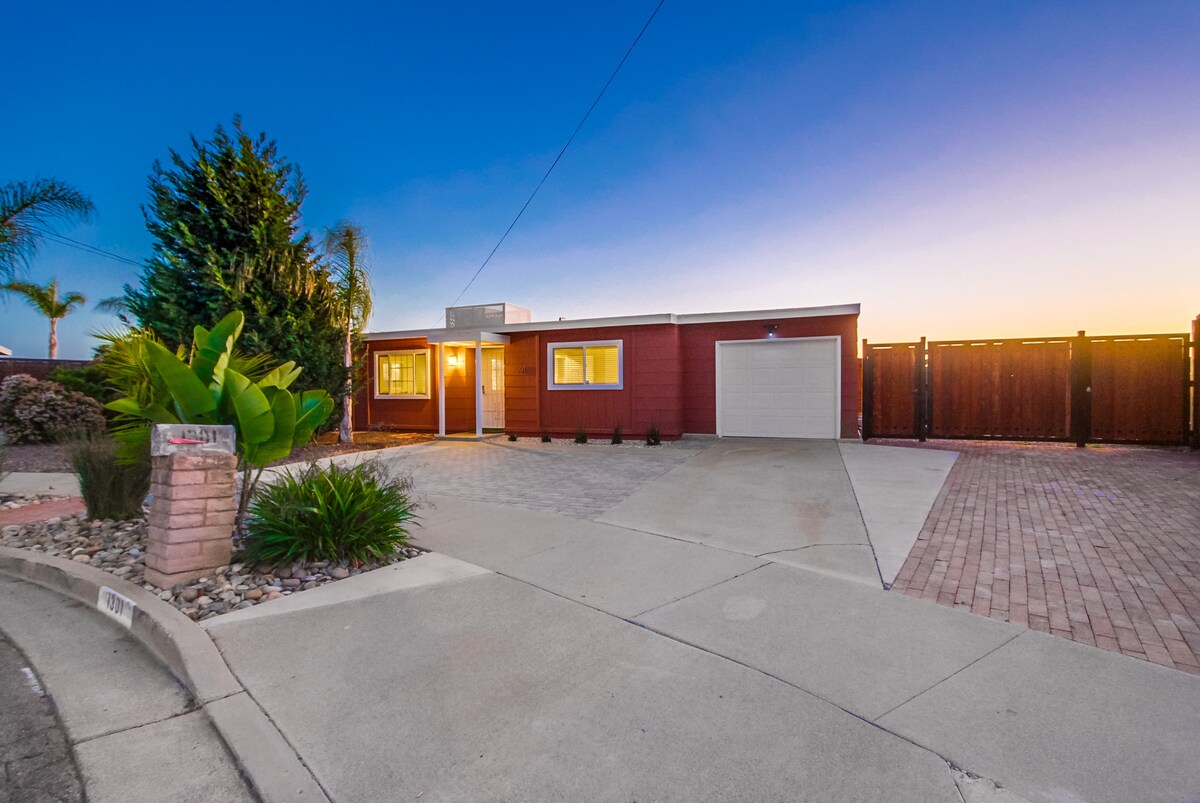 Fly till denna fridfulla tillflyktsort, bara 3/4 mile till stranden! Detta boende har en grill och gott om uteservering och matbord, utomhus-TV för att titta på spelen, eller mysa på utesoffan och titta på filmer med eldstaden rullande, och ett glas vin, sitta i bubbelpoolen, eller njuta av bastun och titta på solnedgångarna. Det renoverade boendet rymmer 6 personer och har 2 sovrum, 1 badrum och en utfällbar queen soffa. Tillbringa en dag på Legoland, Del Mar Racetrack, Disneyland, eller gå till stranden. Detta är inte ditt festhus