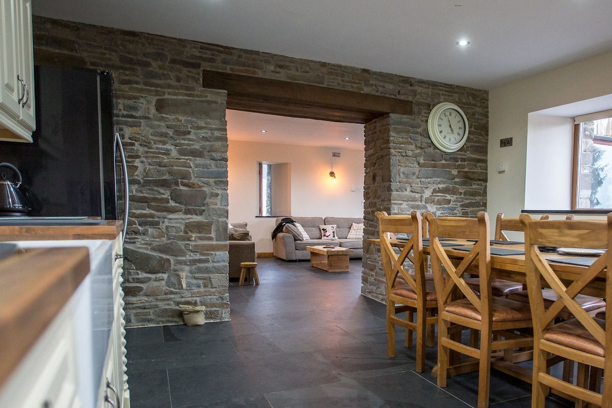 Inbäddat vid foten av Preselis ligger "Y Glowty", en kärleksfullt renoverad ladugård. Med sina vackra balkar, öppen planlösning med vedeldad spis, golvvärme allt kompletteras med ett mysigt mezzaninsovrum med dubbelsäng. En kort bilresa till prisbelönta stränder och fantastiska bergsvandringar – om du är ute efter lugn och ro eller ett mer energiskt tempo kommer du inte att bli besviken här! Ett varmt välkomnande väntar. På grund av boendets utformning är det inte lämpligt för spädbarn och barn.