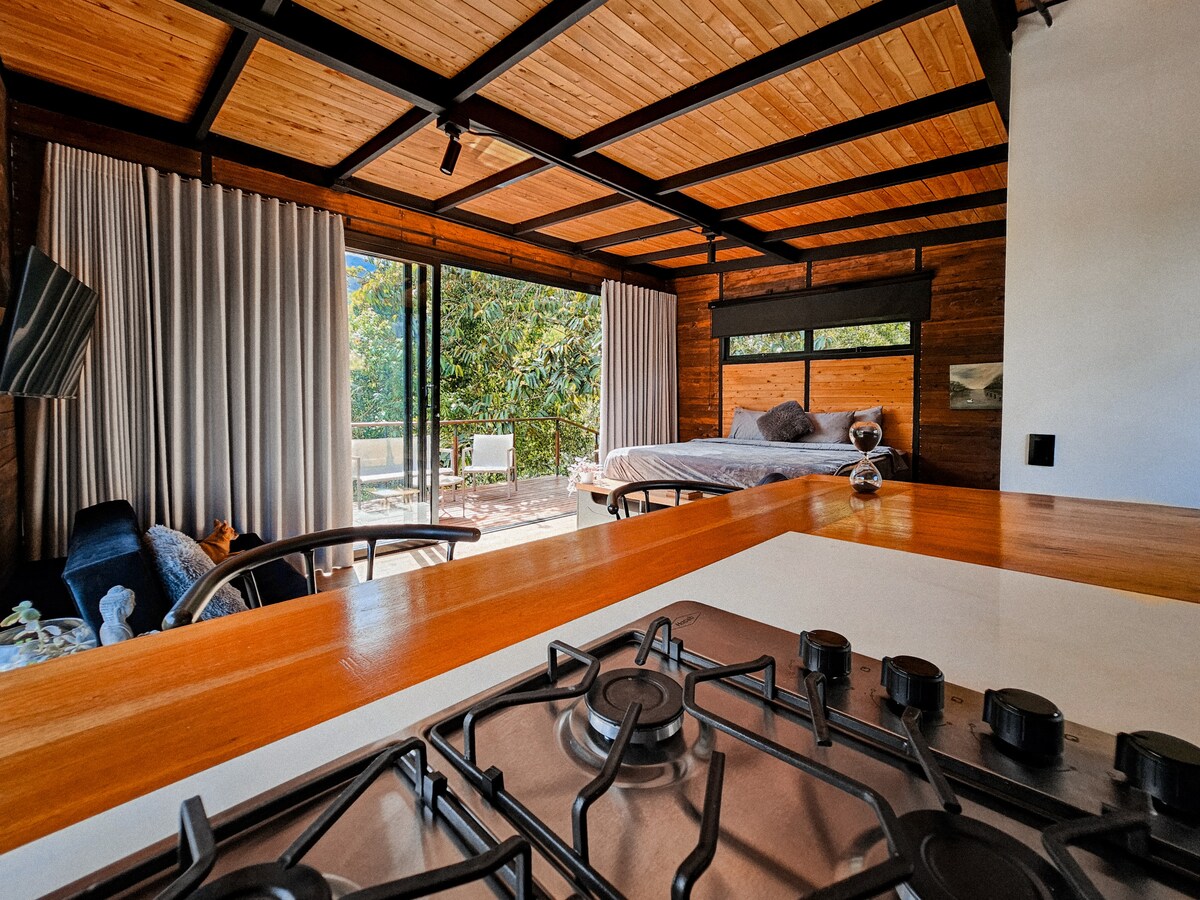 Njut av den vackra naturen och lugnet i detta lyxiga boende med bastu, jacuzzi och privat flodterrass. Bara 75 minuter från Medellín är denna vackra stuga lättillgänglig med vilken bil eller motorcykel som helst. De spektakulära omgivningarna i Cocorná har mycket att erbjuda, inklusive skärmflygning, forsränning, fyrhjuling och vandringsleder längs vackra floder. Vi hjälper dig gärna med transport eller aktiviteter. Vi erbjuder privat transport från flygplatsen! Inkluderar frukost!