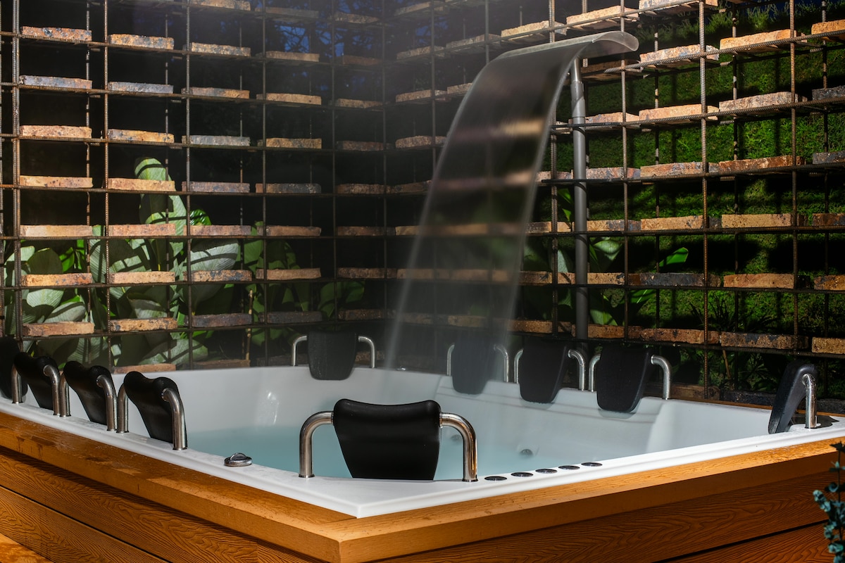 🌳 Fly till en tillflyktsort i bergen där modern design blandas med naturen! Njut av minimalistiska utrymmen, panoramautsikt och den komfort du förtjänar. Slappna av vid eldstaden, koppla av i den eukalyptusdoftande bastun eller njut av jacuzzin medan du tittar på solnedgången. Perfekt för romantiska resor, resor med vänner eller inspirerande tillflyktsorter. ✨ Upplev bergen magi med en unik design! ✨