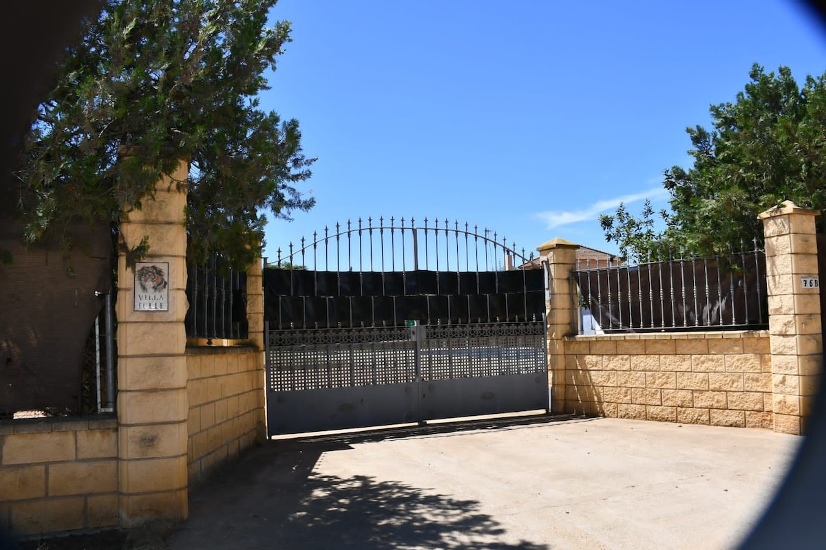 En helt unik villa för gäster bara 20 minuter från Sevillas flygplats. Dess storlek är anmärkningsvärd, eftersom den har 5 sovrum, 2 badrum, ett med en dusch och det andra med ett extra stort badkar, ett rymligt vardagsrum med en öppen spis och ett fullt utrustat kök; två stora verandor, en stor pool, en stor gräsmatta och trädgård; parkering för 5 bilar och en grill. Det är ditt ställe att tillbringa perfekta stunder för både familjer och grupper.