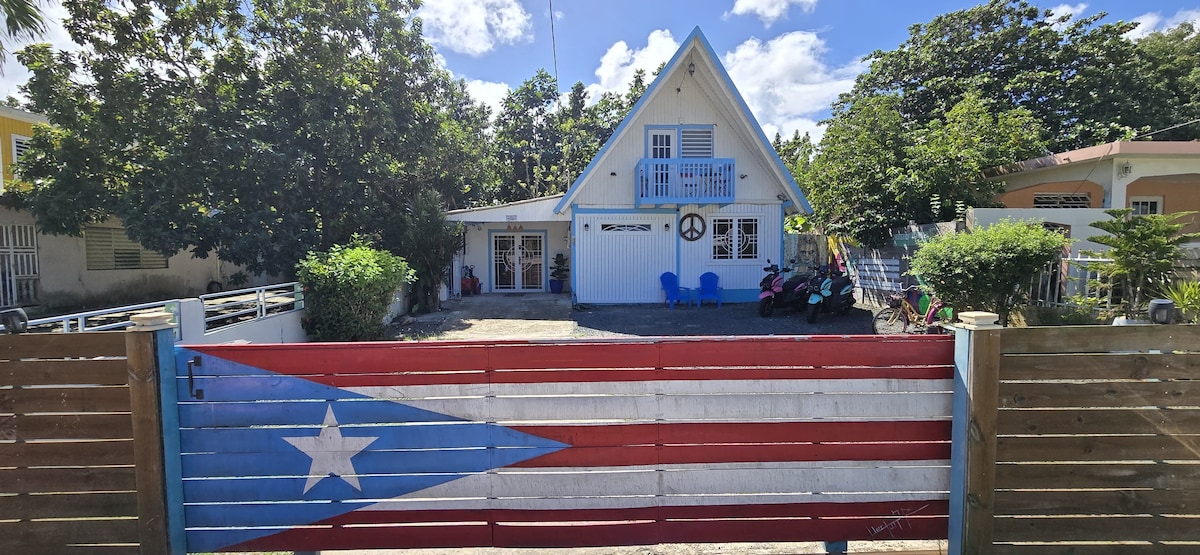 Hippie Chalet Piñones är en mysig, bekväm, rustik och unik Chalet 3 minuters bilresa från stranden. Du kommer att uppleva öliv och all dess lokala kultur. Beläget mitt i ett av Puerto Ricos bästa turist- och strandområden, Piñones, finns det mycket att göra inom några minuter från stugan, oavsett om du går, cyklar, kör eller blir äventyrlig och rider på en häst.