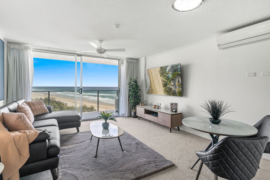 Beläget vid den ABSOLUTA STRANDEN kommer du att känna dig som hemma i denna nyrenoverade lägenhet. Koppla av i lyxig stil och njut av den fantastiska utsikten från varje rum eller ta ett dopp i den (uppvärmda) poolen eller havet genom den direkta tillgången till stranden från tomten. Ett stenkast till Surfers Restaurants, Shops & Bars, du kommer att vara inom bekvämt gångavstånd till allt du behöver för att göra detta till en minnesvärd semester eller kort paus. Källare säker bilplats tillhandahålls 1,9 m.