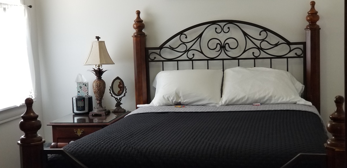 Ursprungligen Delaney's Saloon i början av 1800-talet, nu ett fullt möblerat boende med ett sovrum beläget på marknivå och inom gångavstånd till allt i Vevay. Inom en timme finns platser som The Ark, Creation Museum, historiska Madison, Indiana och mycket mer. Ingår i boendet: tvättmaskin och torktumlare, fullt utrustat kök, dropp- OCH Keurig-kaffebryggare, två TV-apparater och wifi, samt alla extra bekvämligheter för att göra din vistelse trevlig. Jag vill att du ska känna dig som hemma och behöver inget under din vistelse.